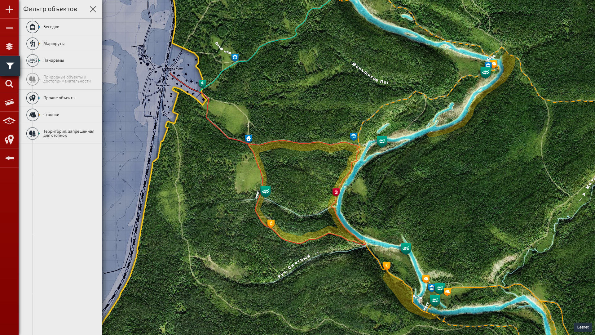 Разработка интерактивных карт и ГИС (геоинформационных систем) различных типов, направлений и тематик. Платформами для разработки являются Leaflet и MapBox. В большинстве проектов используются открытые данные, основанные на OpenStreetMap.